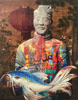 The venue is Lhong1919 Gallery at Khlong San, Bangkok. This is the exhibition of paintings, sculptures and mixed media from 25 contemporary artists who portray the thought and techniques regarding the Qin Shi Huang, the first emperor of China and his army of porcelain soldiers from Xian City, the world's cultural heritage. Meanwhile, the Fine Arts Department brought over 140 pieces of porcelain soldiers and ancient relics to be exhibited at Siwamok Phiman Hall, National Museum Bangkok from 15 September - 15 December 2019.